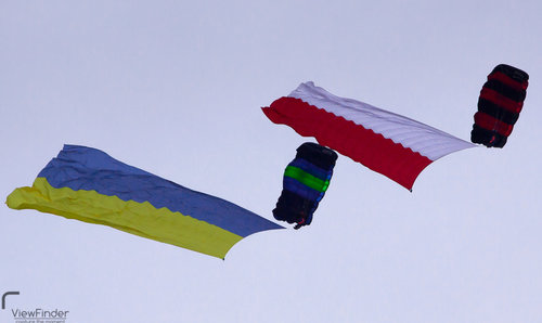 Grupa spadochronowa Sky Magic wykonała skok z flagami Polski i Ukrainy